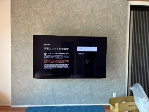 枚方市の新築住宅にて大型薄型テレビの壁掛け設置と電気工事を行いました